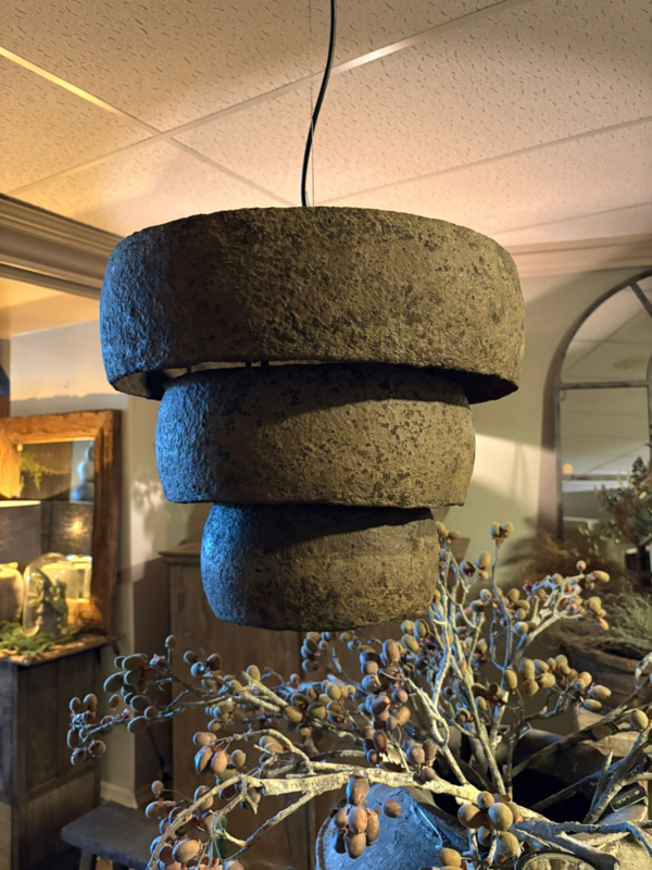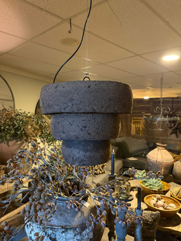 Mooie organische hanglamp lamp 75 x 25 x H20 cm grijs bruin klei leem kleur landelijk stoer ovaal ovale kroonluchter