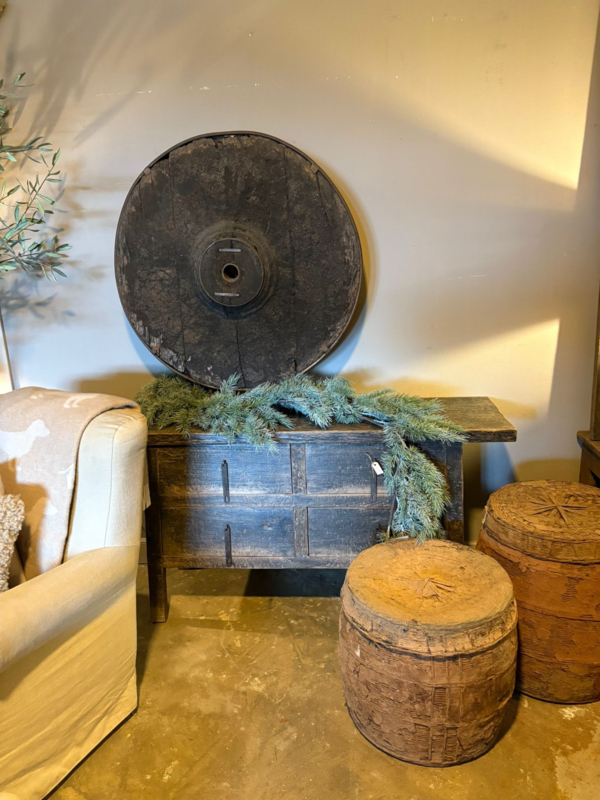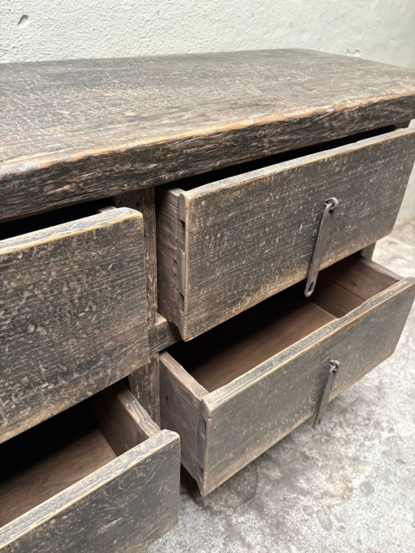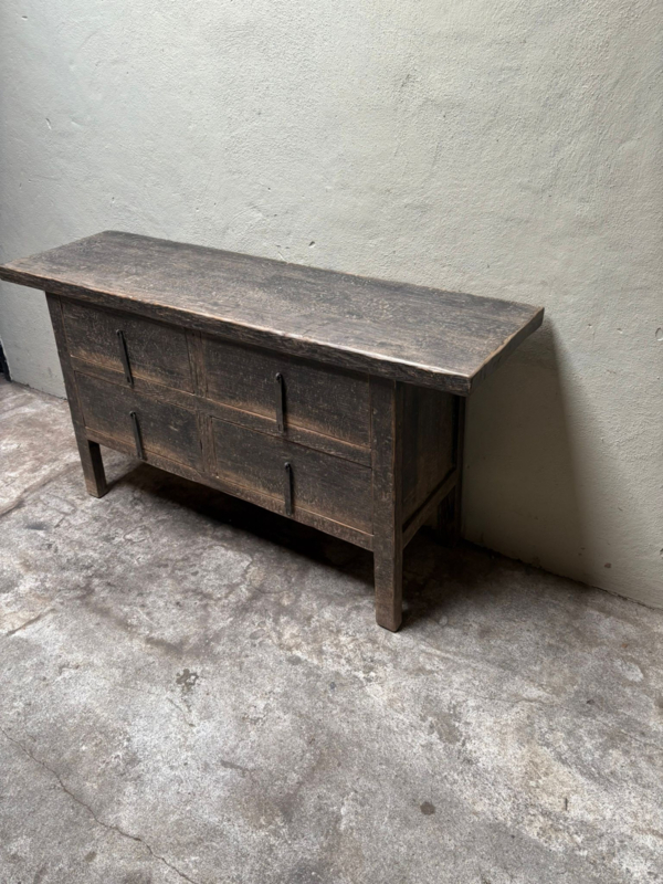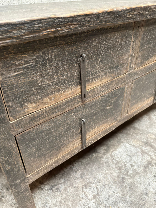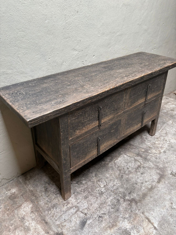 Prachtige oude vergrijsd doorleefd houten tafel met lades