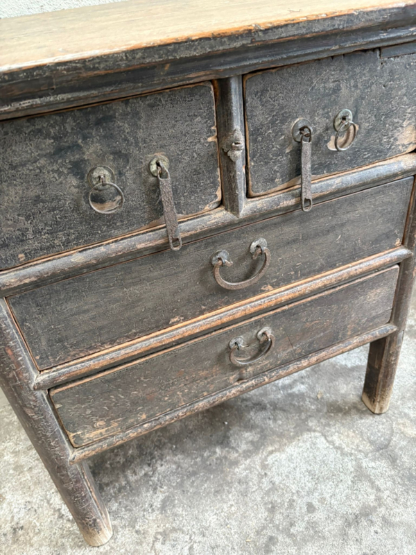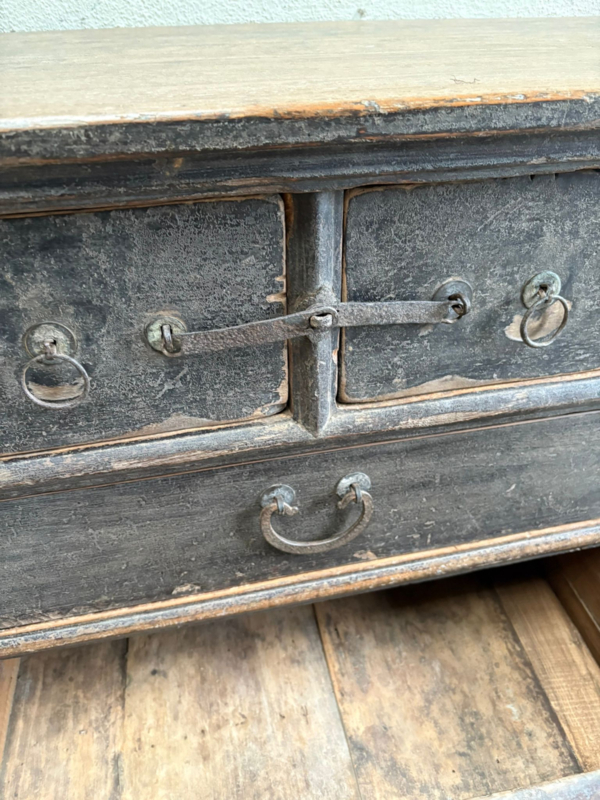 Stoere unieke grijze vergrijsd houten ladekast sidetable kast commode landelijk 96 x 46 x H85 cm