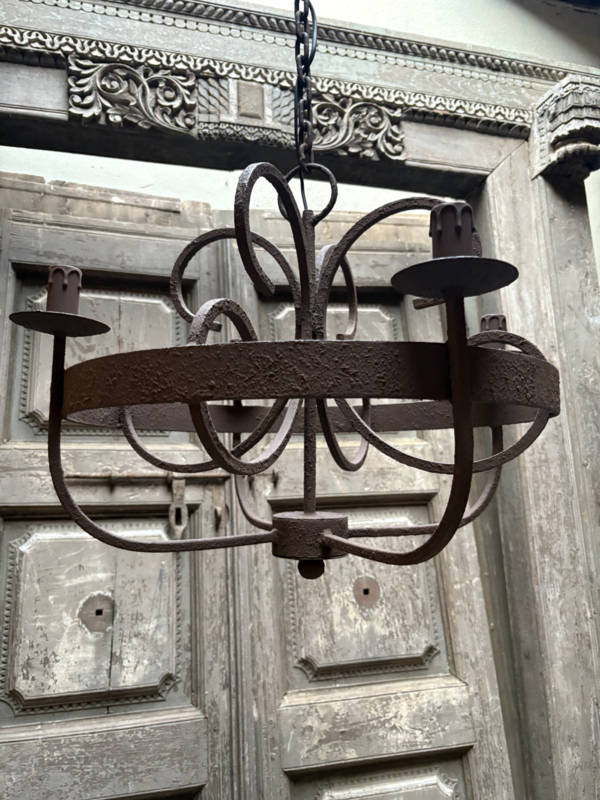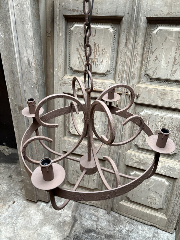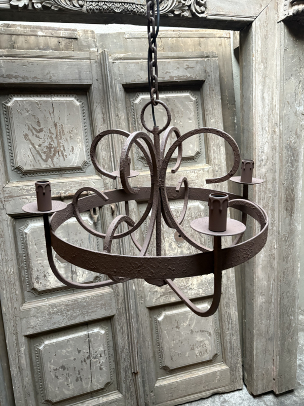 Garib 4 - arms kroonluchter metalen lamp hanglamp vergrijsd bruin landelijk stoer