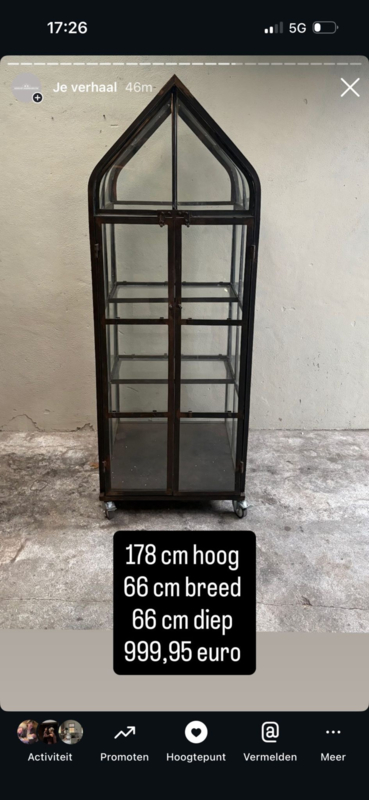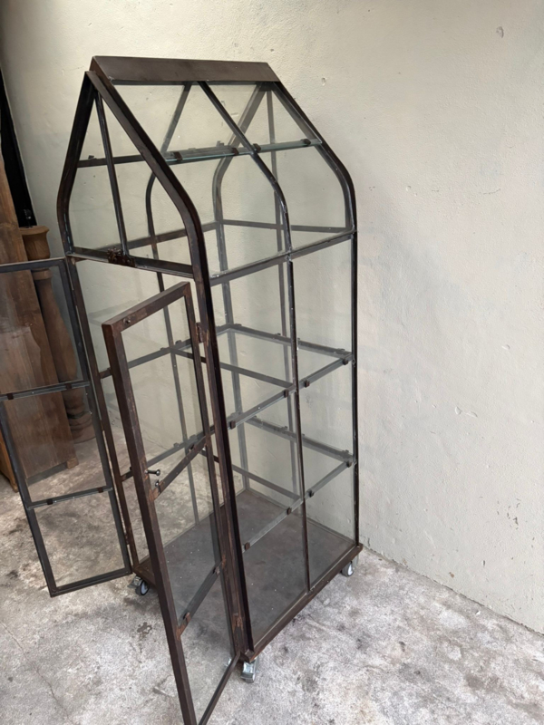 Metalen kas kasje tuinkas tuinkast kast vitrine vitrinekast glaskast met glas H178 X B66 XD66 cm