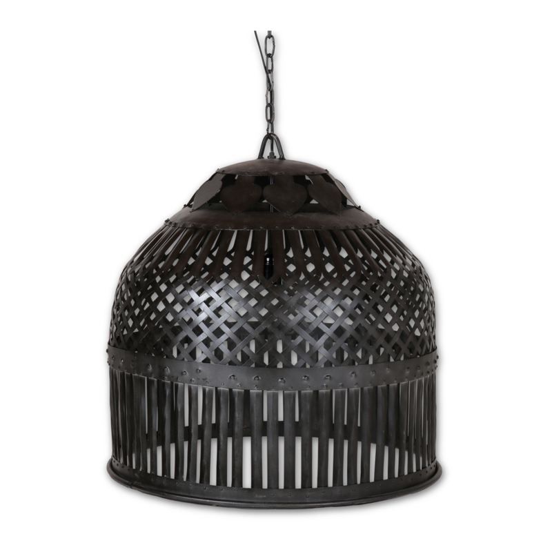 Grote smeedijzeren korf korflamp hanglamp