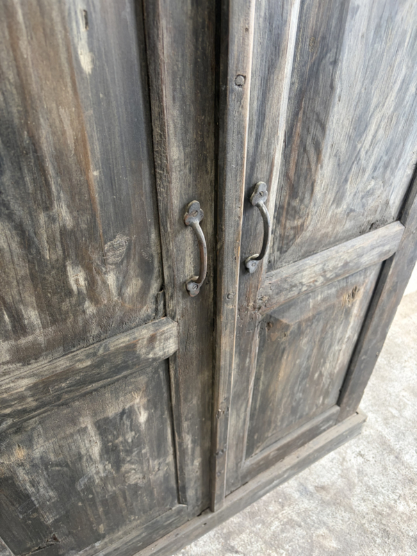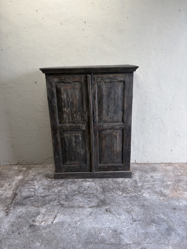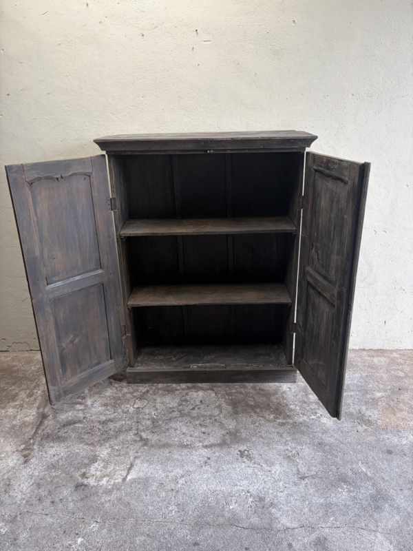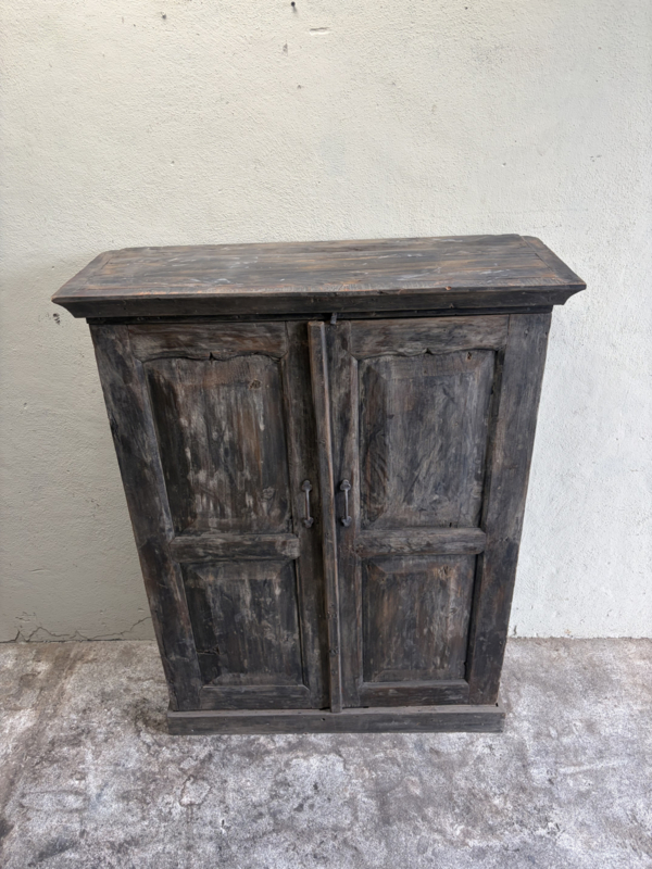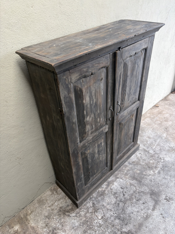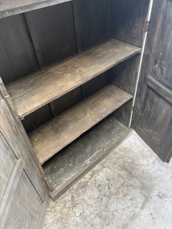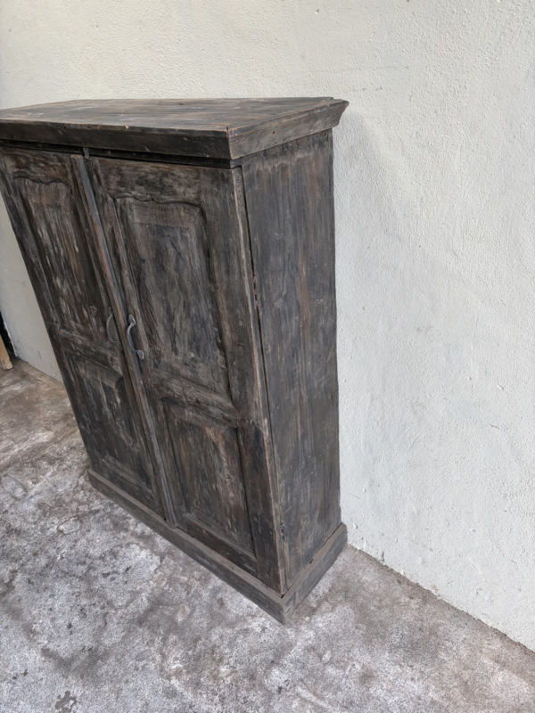 Oud houten dichte kast dicht kastje 2deurs halkastje legplanken vergrijsd origineel oudje landelijk stoer sober