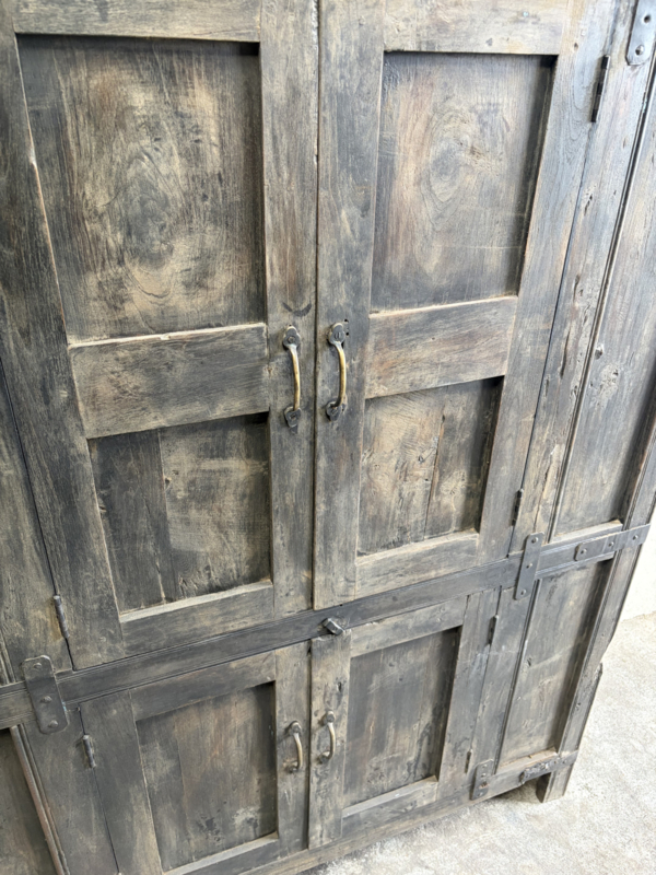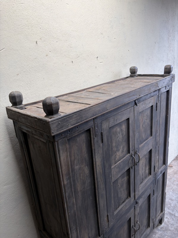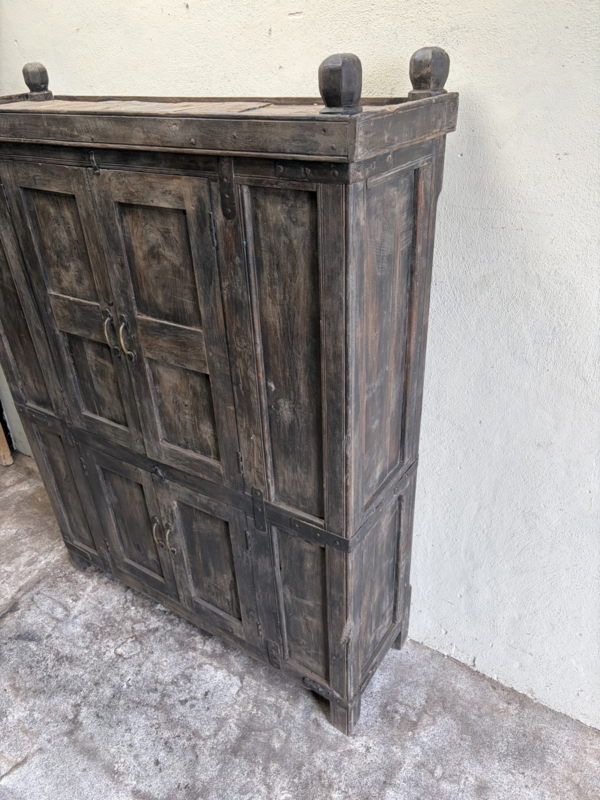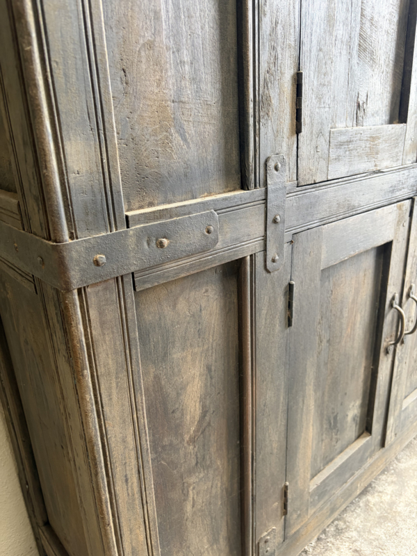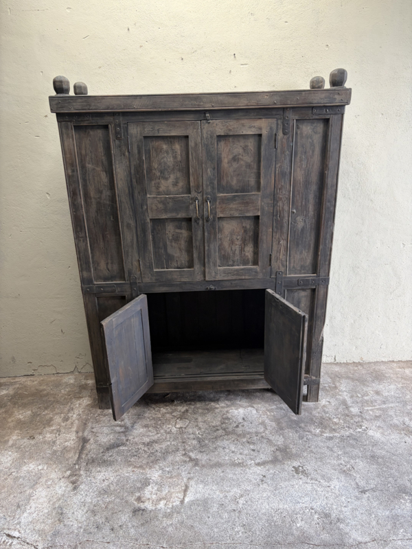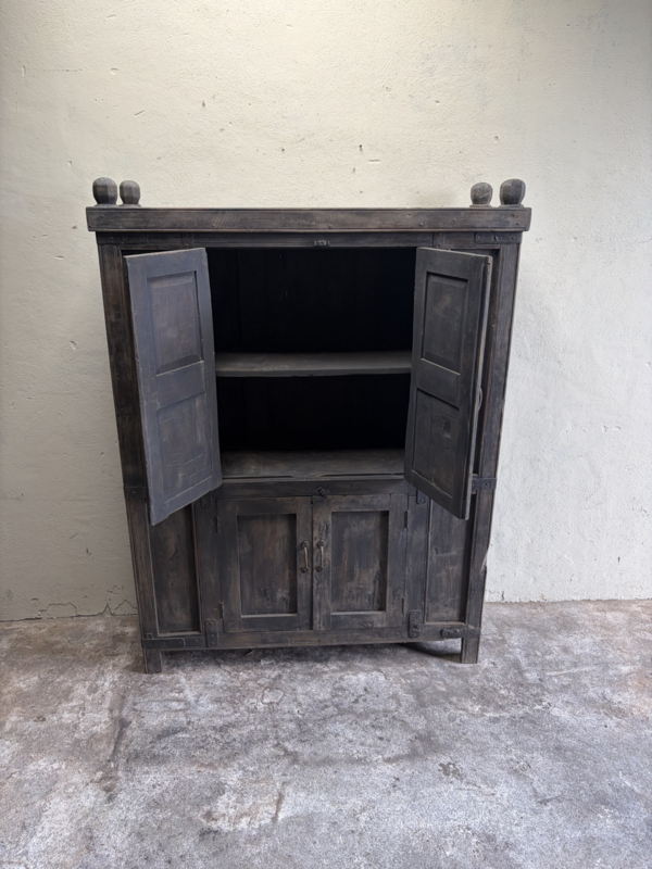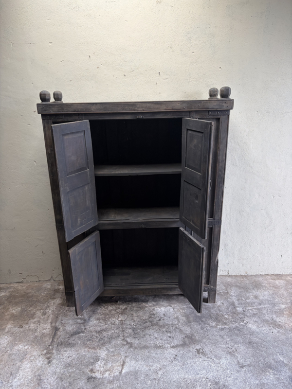 Leuk oud houten kast kastje 2 x 2 deuren halkastje legplanken vergrijsd origineel oudje landelijk stoer sober