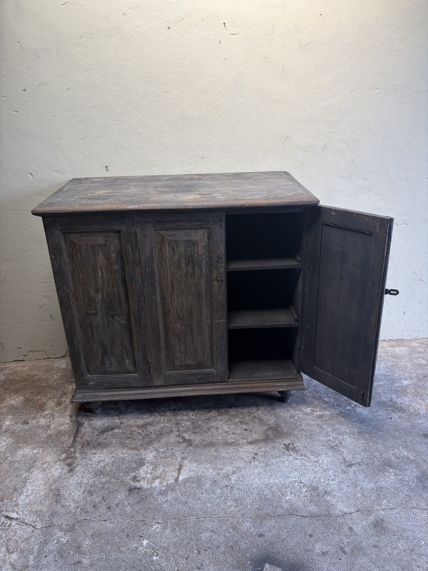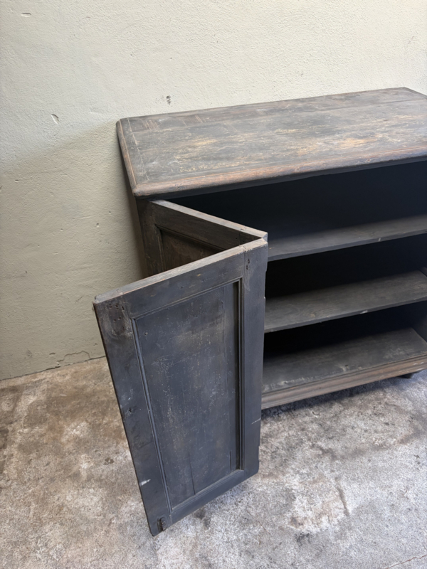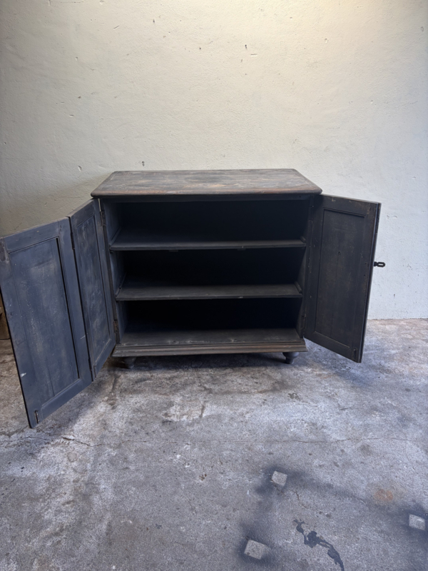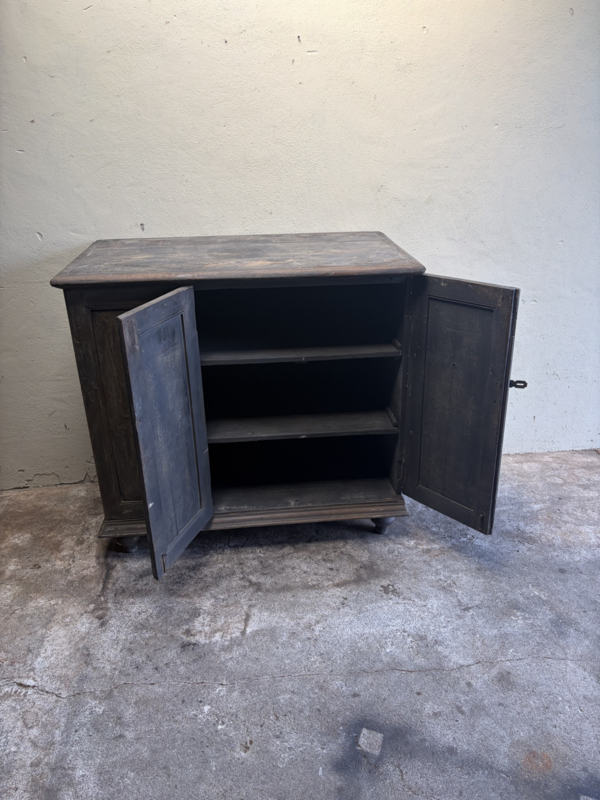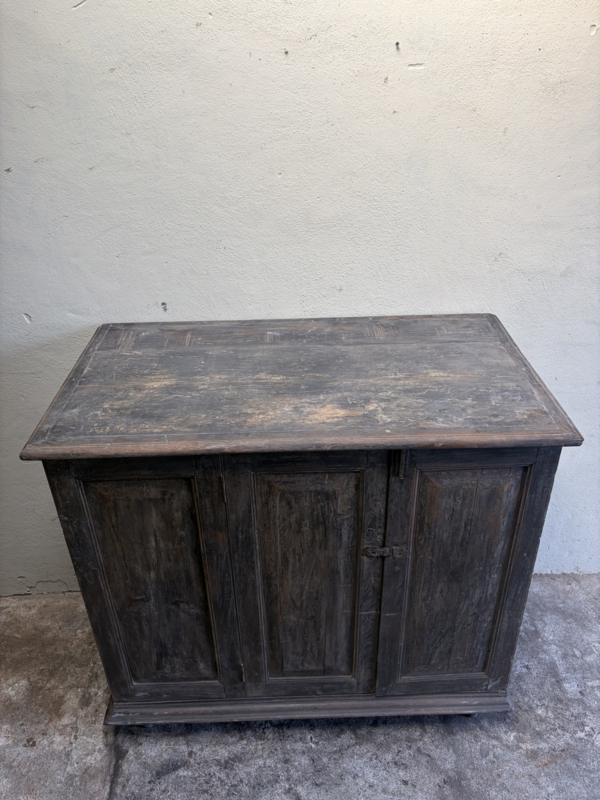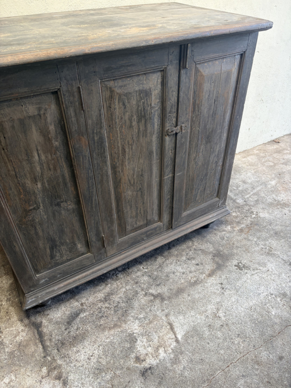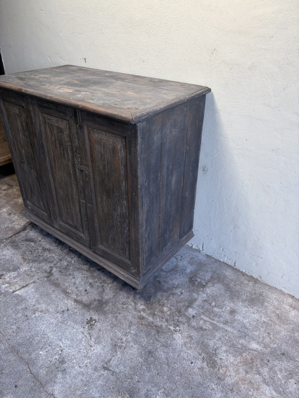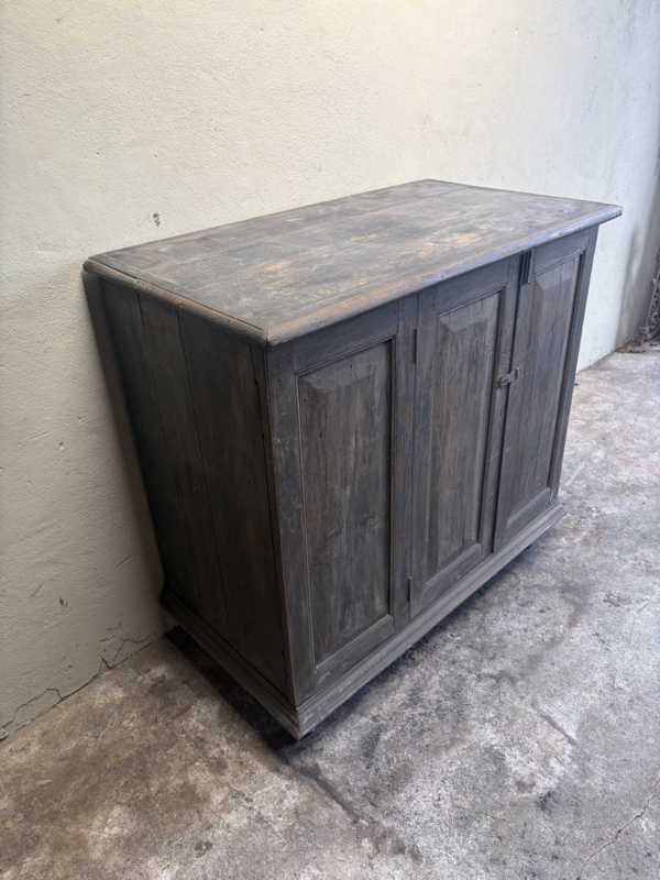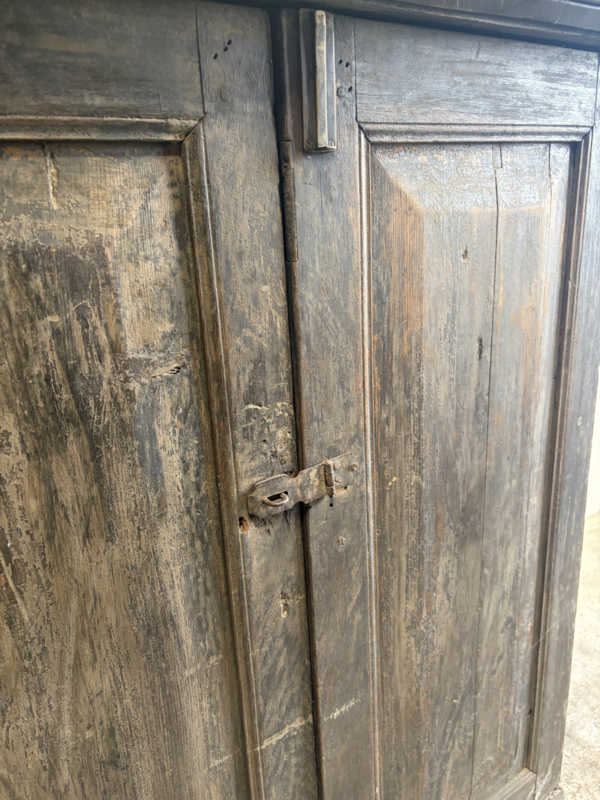 Stoer oud houten kast kastje 3 deuren halkastje legplanken vergrijsd origineel oudje landelijk stoer sober