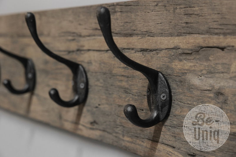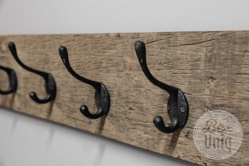 Railway houten kapstok oud hout stoer landelijk plank grof nerf 100 cm 1 meter wandhaken wandkapstok industrieel