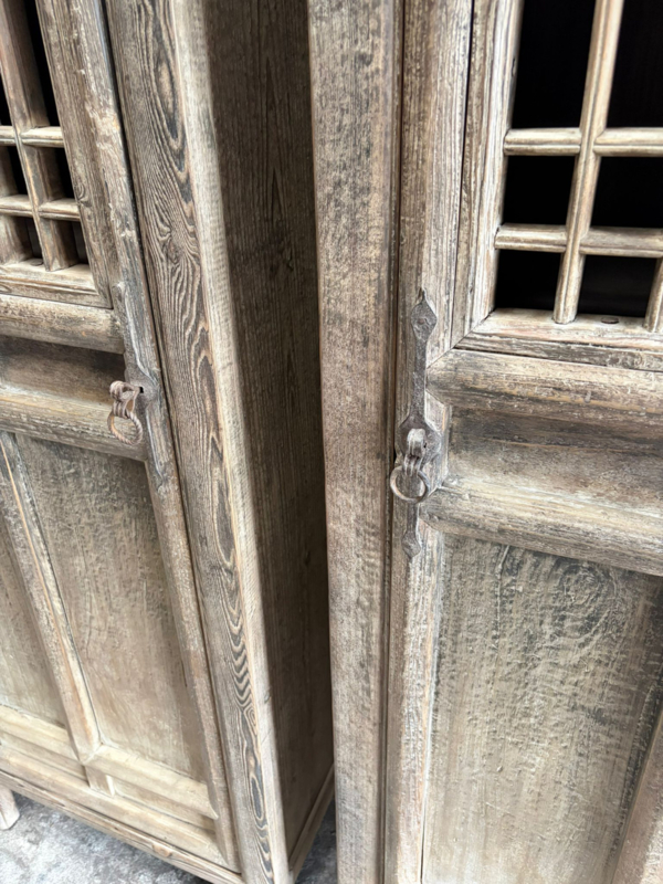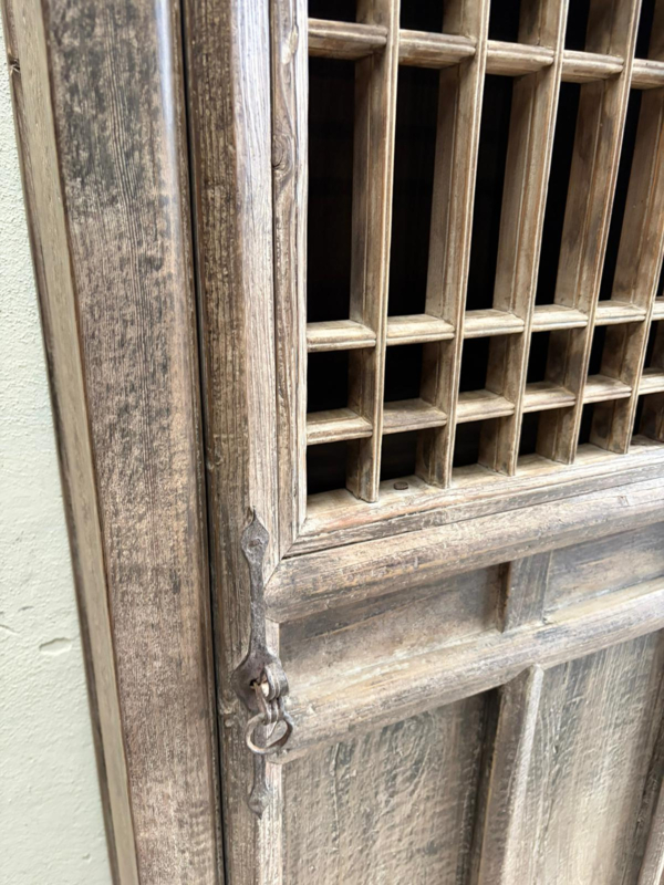 Mooie hoge smalle vergrijsd houten kast rechtsdraaiende deur landelijk 78b