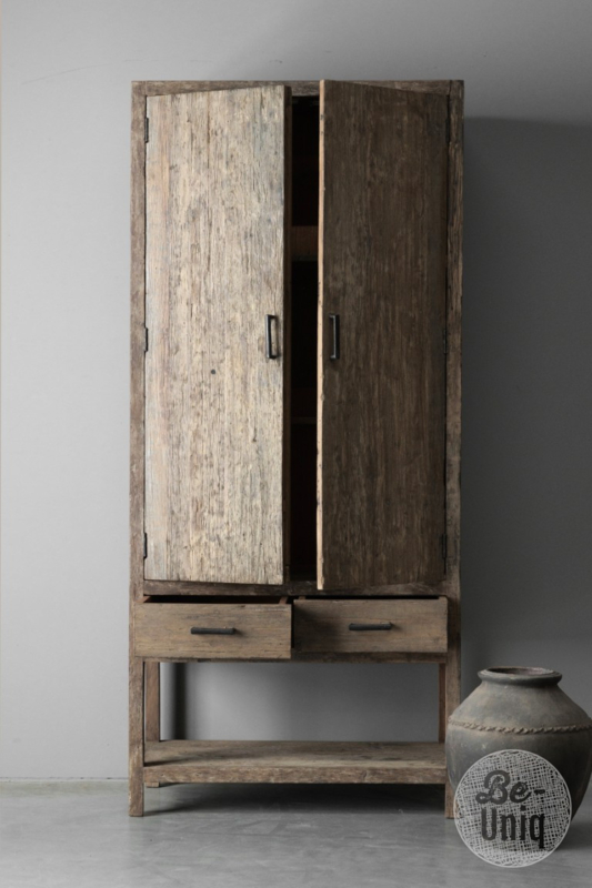 Grote railway truckwood vergrijsd houten kast 2deurs dichte kabinet kast 210 x95 x 45 cm landelijk stoer SEP