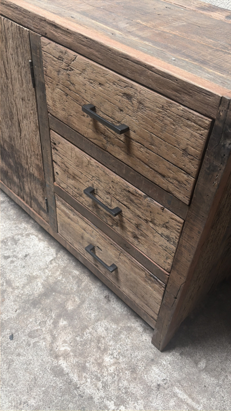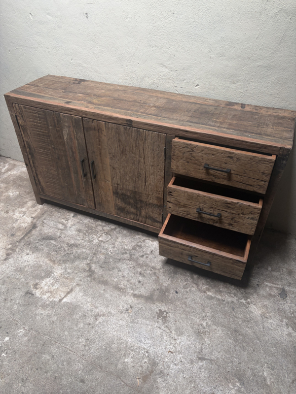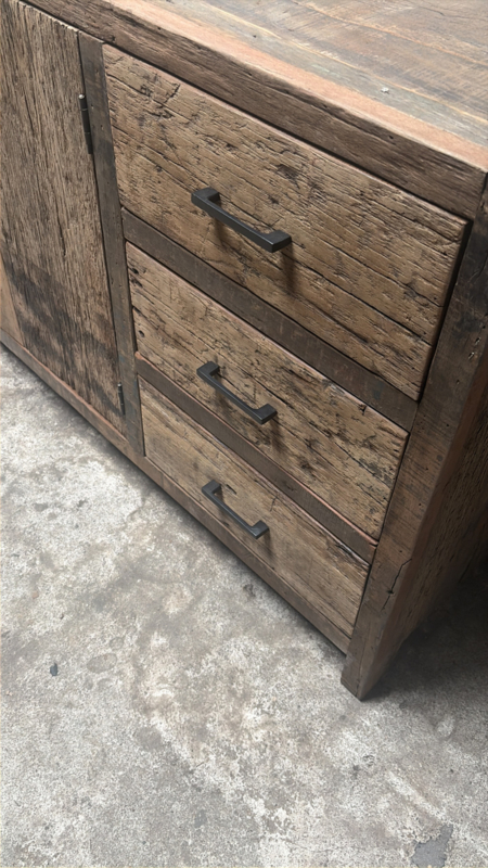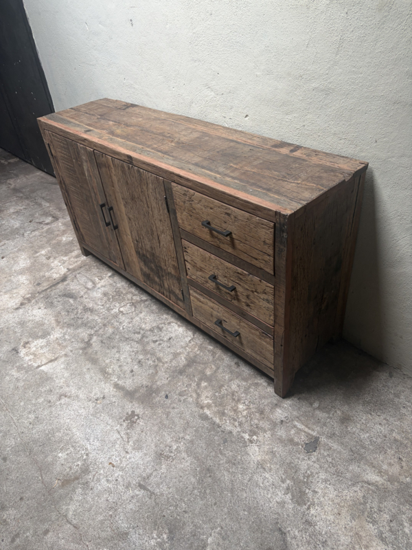 Oud railway houten dressoir tv meubel kast televisie televisiekast televisiemeubel vol massief hout landelijk industrieel robuust oud hout vintage sidetable 150 x 80 x 40cm nr 99