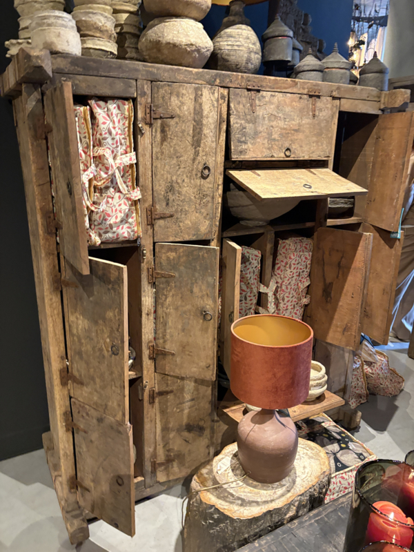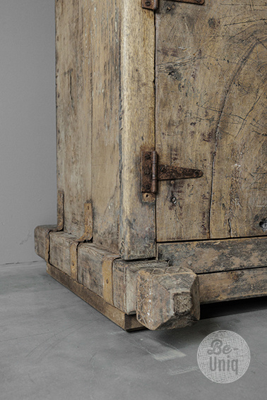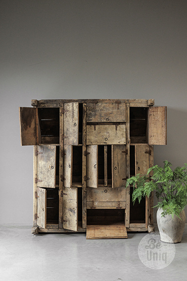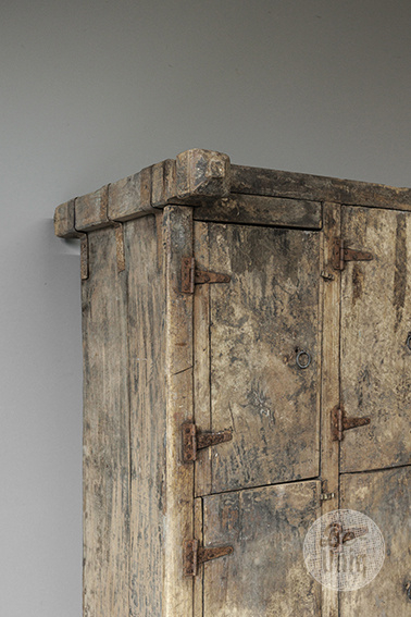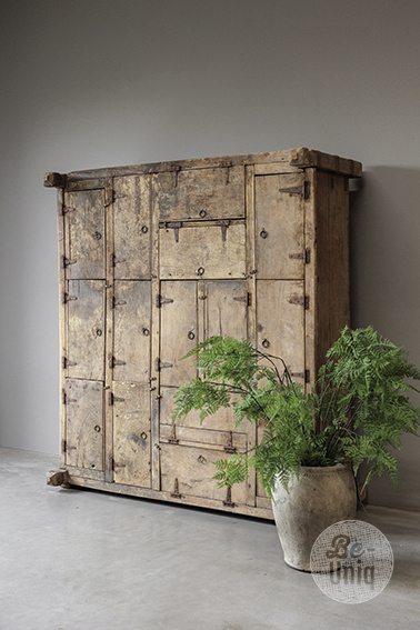 Echte unieke houten grutterskast vakkenkast dichte kast met deurtjes oud beslag 166 x 150 x 43 cm landelijk vintage industrieel