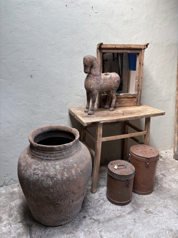 Oud houten Sidetable wandtafel tafel buro bureau wastafel L91 x D48,5 x H80 cm landelijk stoer