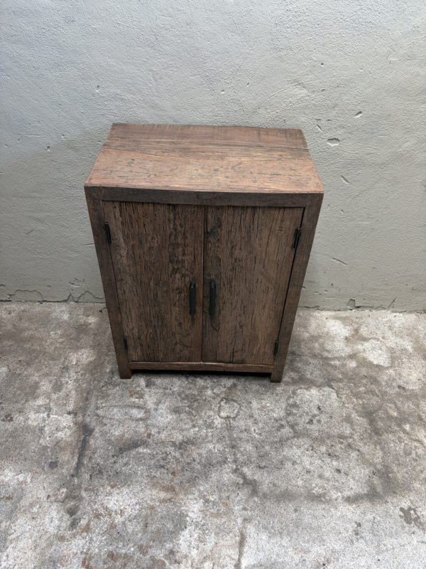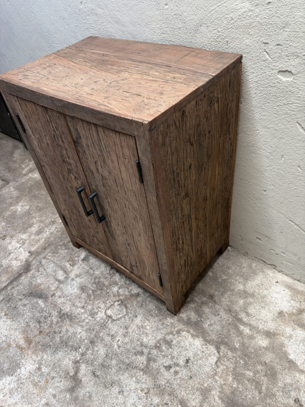Vergrijsd houten 2 deurs dichte kastje legplanken landelijk SEP wastafel wasmeubel kastje stoer wastafel wastafelmeubel commode