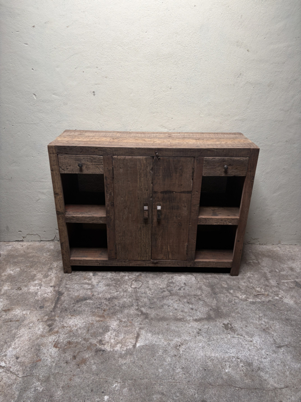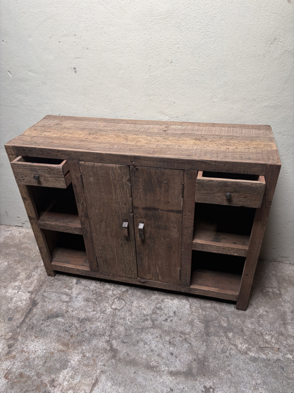 Landelijke houten kast 120 x 40 x H90 cm wastafelmeubel badkamermeubel sidetable kast deurtjes lades schap landelijk stoer