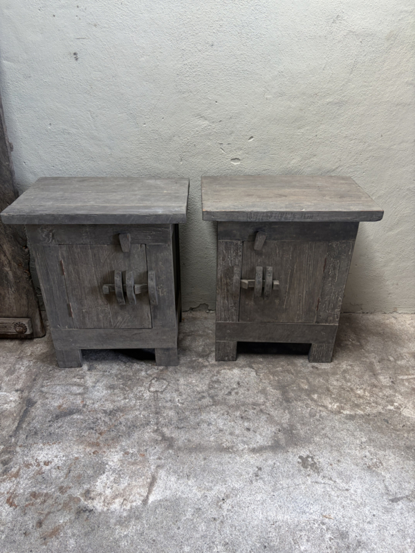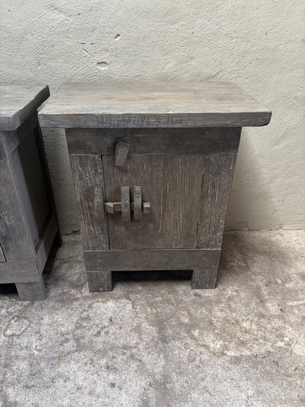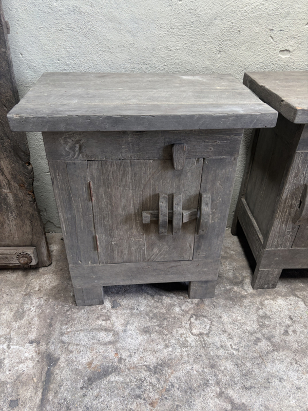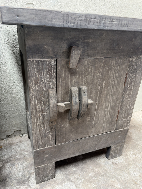 Stoer vergrijsd oud doorleefd houten truckwood kastje nachtkastje nachtkastjes landelijk stoer industrieel vintage hout