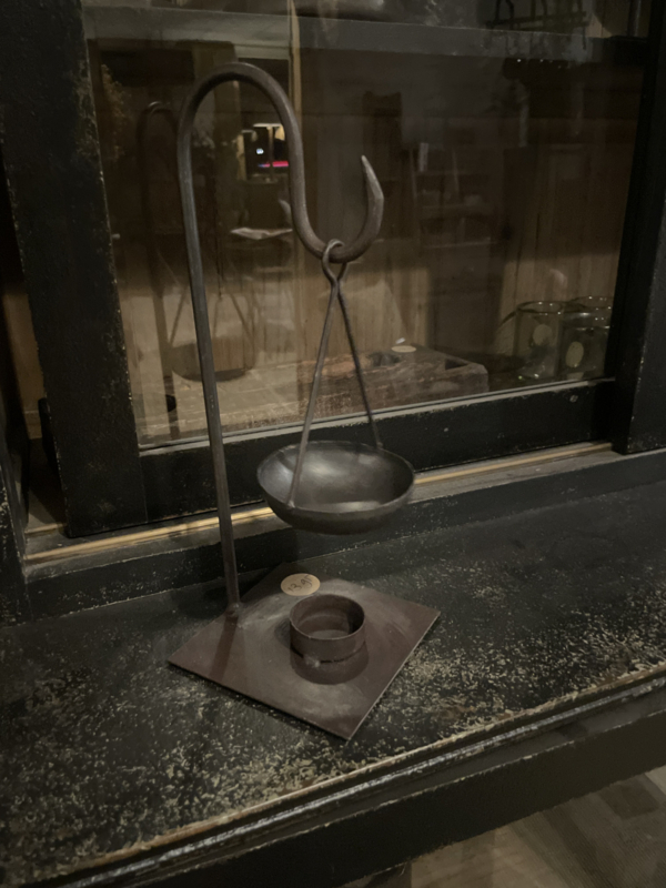 Zwart bruin metalen brander voor amberblokjes hoog model deurblokje geurolie kandelaar hanger hangend theelichtje