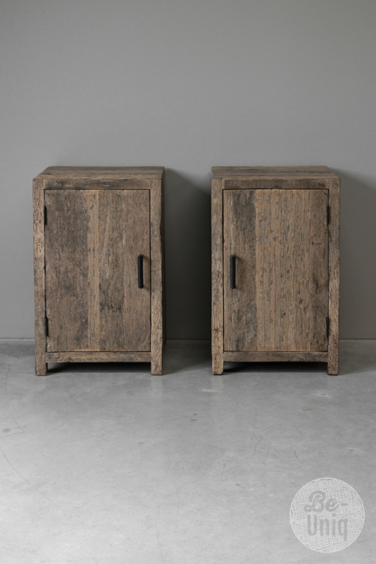 Stoer vergrijsd oud doorleefd houten truckwood kastje nachtkastje nachtkastjes landelijk stoer industrieel vintage hout ladenkastStoer oud houten nachtkastjes nachtkastje