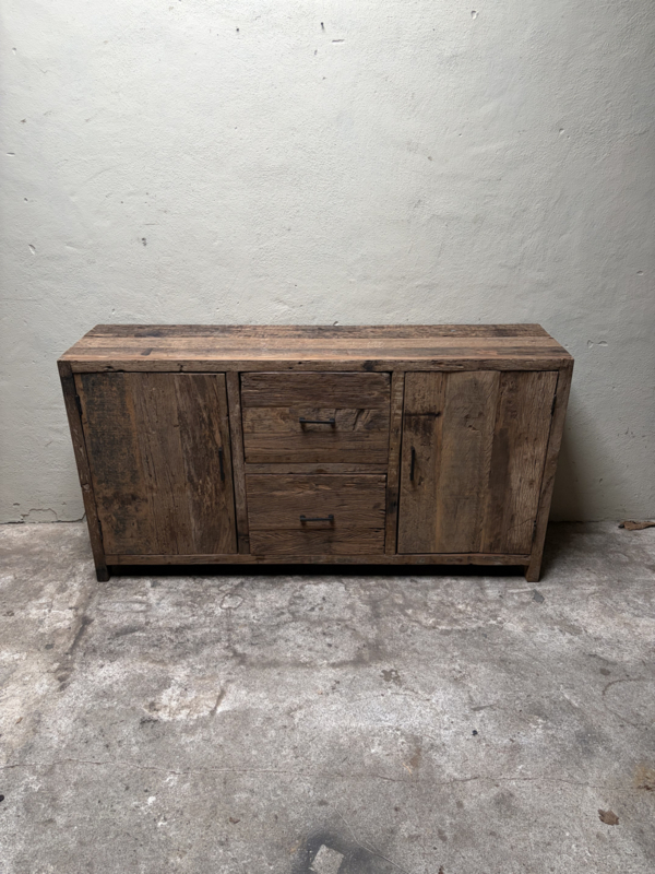Oud railway houten dressoir tv meubel kast televisie televisiekast televisiemeubel vol massief hout landelijk industrieel robuust oud hout vintage sidetable 160 x 85 x 40cm nr 98Stoer oud houten kast