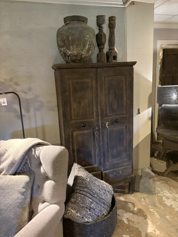 Vergrijsd houten kast 2deurs dichte linnenkast servieskast landelijk kabinet stoer 180 x 111 cmVergrijsd houten kast