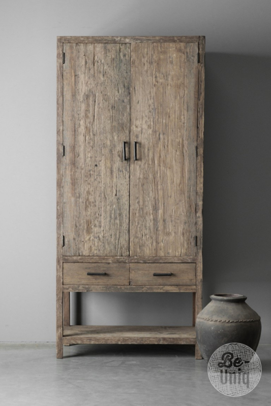 Grote oud truckwood railway houten kast 2 deurs lades ladekast landelijk stoer industrieel keuken SEP 210 x 100 x 40 cmGrote kast met veel opbergruimte