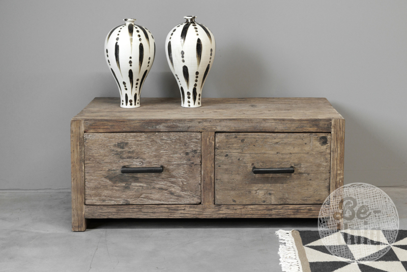 Stoere oud vergrijsd houten salontafel teakhouten teakhout houten blad 120 x 60 cm bassano ijzeren onderstel landelijk stoer industrieel SEPStoere salontafel tafel