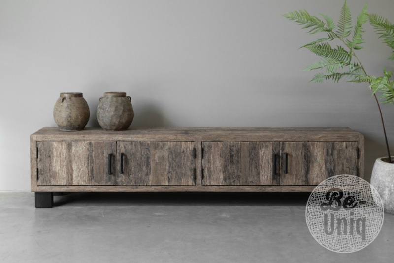 Stoer oud vergrijsd truckwood railway dressoir 220 x 45 x H81 cm televisiemeubel televisiekast badkamermeubel stoer landelijk industrieel Krakau SEPGroot vergrijsd doorleefd Railway truckwood houten kast dressoir televisiemeubel