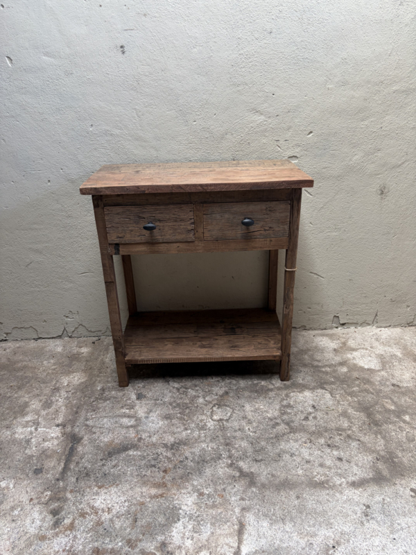 vergrijsd oud houten bijzettafeltje ladekastje SEP ladekastjes kastjes tafel tafeltje halkastje landelijk bijzettafel bijzettafeltjeLadekastje tafeltje bijzettafeltje gemaakt van oud vergrijsd hout
