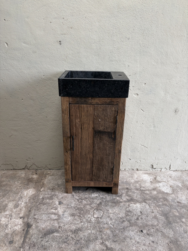Landelijk industrieel oud houten toiletmeubel badkamermeubel wastafeltje wastafelmeubel inclusief hardstenen wasbak zonder kraangat SEPHouten wastafelmeubel inclusief hardstenen wasbak zonder gat voor de kraan